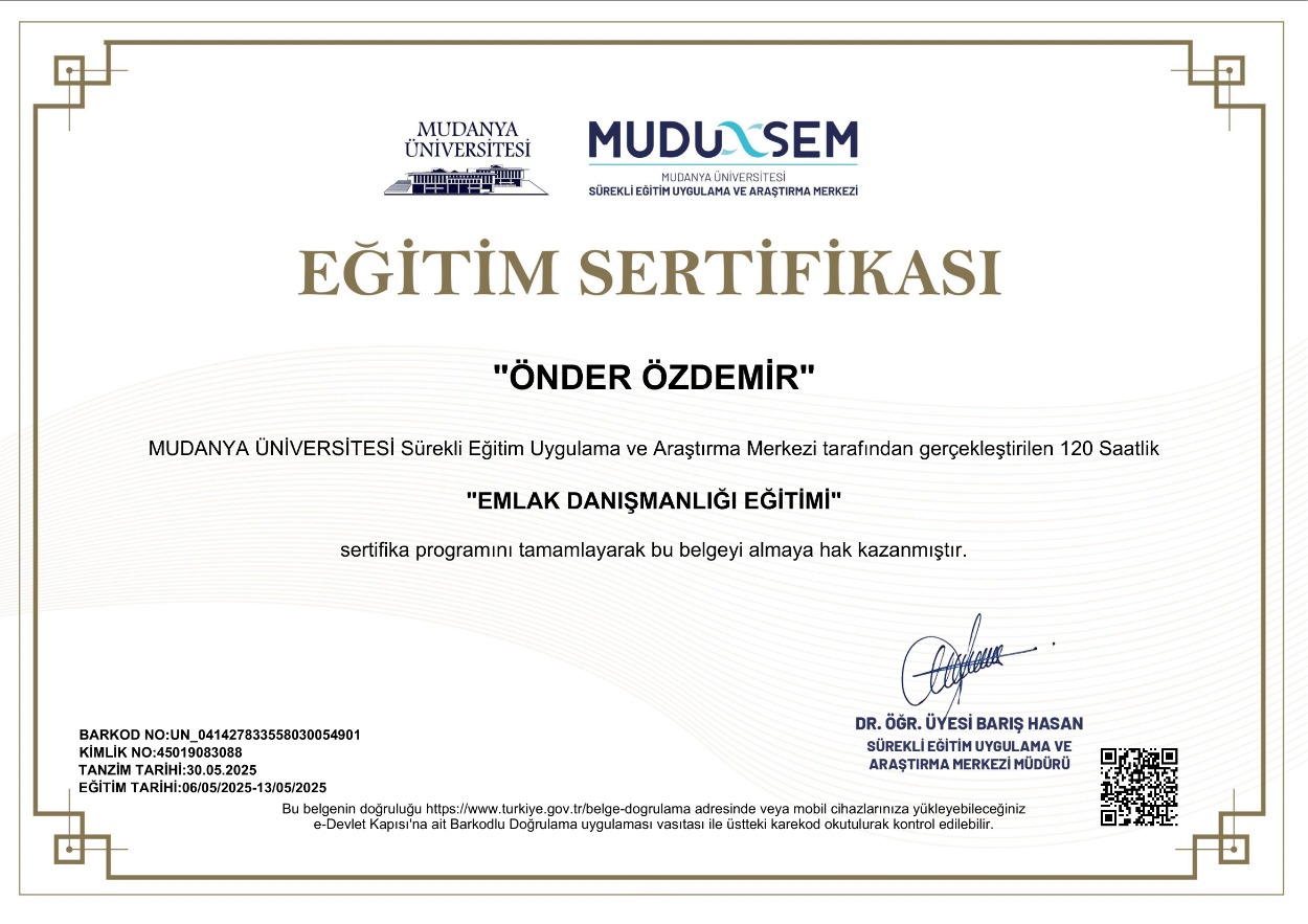Merhaba, ben Önder Özdemir. 30 yıla yakın hizmet sektöründeki yöneticilik tecrübemi artık gayrimenkul alanında sizlerle paylaşıyorum. Remax Kaya Beylikdüzü ofisinde, güvene dayalı, çözüm odaklı danışmanlık anlayışım ile yanınızdayım. Önceliğim; doğru yatırımı, ihtiyaçlarınıza en uygun şekilde bulmak. Dürüstlük, ulaşılabilirlik ve profesyonellik benim vazgeçilmezlerim. Yeni bir başlangıç, doğru bir adım ya da sadece bir danışma için bile olsa, bir kahve eşliğinde tanışmaya ne dersiniz.